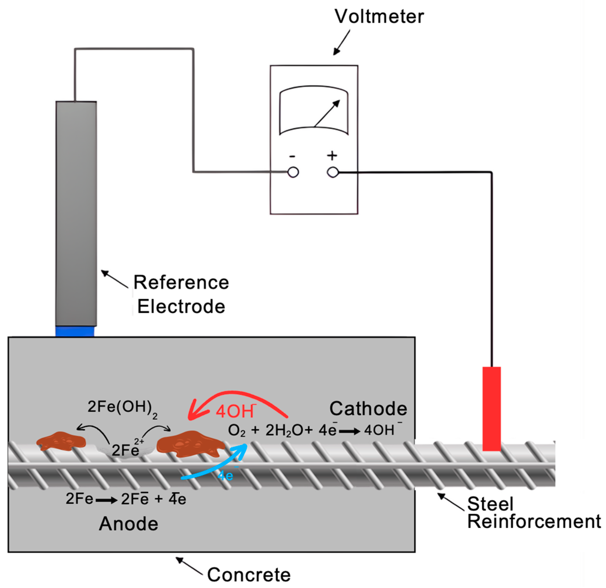 - ASTM C876-15; Standard Test Method for Corrosion Potentials of Uncoated Reinforcing Steel in Concrete. ASTM International: West Conshohocken, PA, USA, 2016.