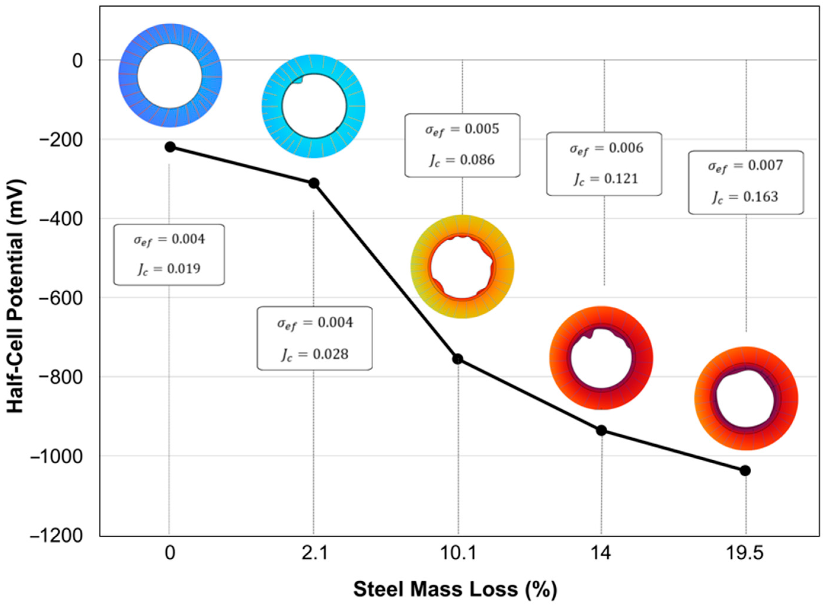| More negative than −350 mV | >90% probability of active corrosion | Indicates a high likelihood of active corrosion. |