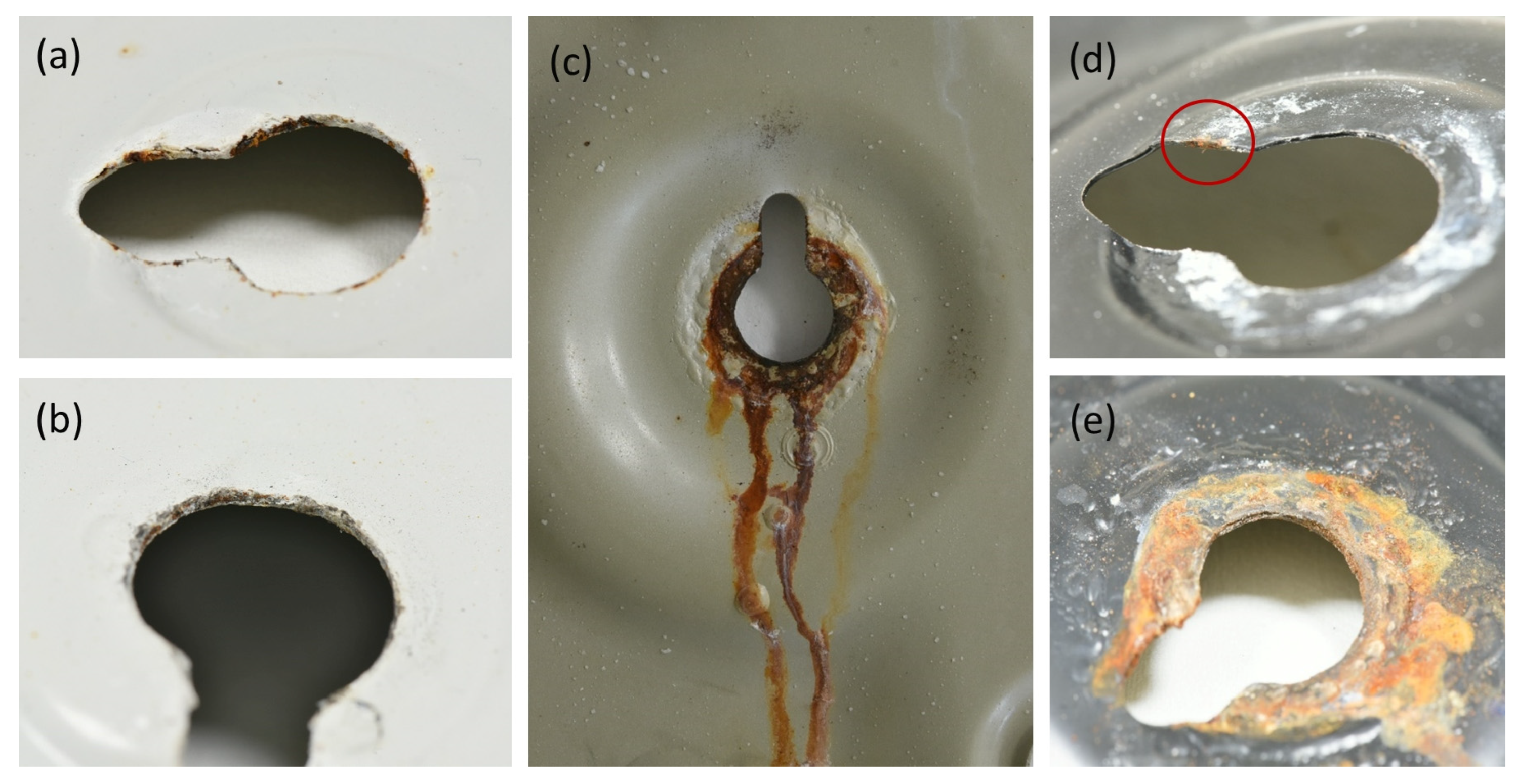- LeBozec, N.; Baudoin, J.-L.; Orain, V.; Thierry, D. Blistering on Painted Automotive Materials Induced by Galvanic Coupling with Rubber Material. Corrosion 2007, 63, 635–639. [Google Scholar] [CrossRef]