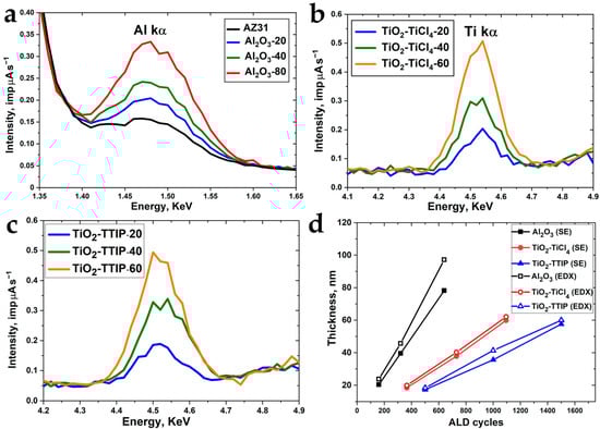 - Nazarov, D.; Kozlova, L.; Rudakova, A.; Zemtsova, E.; Yudintceva, N.; Ovcharenko, E.; Koroleva, A.; Kasatkin, I.; Kraeva, L.; Rogacheva, E.; et al. Atomic Layer Deposition of Chlorine Containing Titanium–Zinc Oxide Nanofilms Using the Supercycle Approach. Coatings 2023, 13, 960. [Google Scholar] [CrossRef]