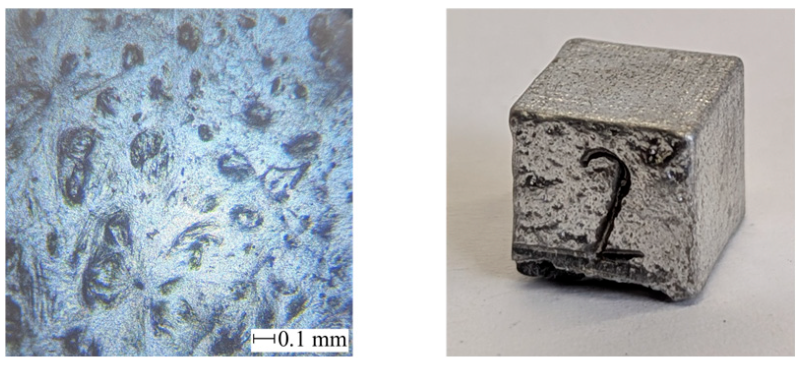 - This study was originally intended to produce cast and LPBF samples using identical powder material. However, the powder could not be fused and cast, meaning that conventional ingots had to be used instead. This can result in slight differences in the material composition that influences microstructure and corrosion behavior.