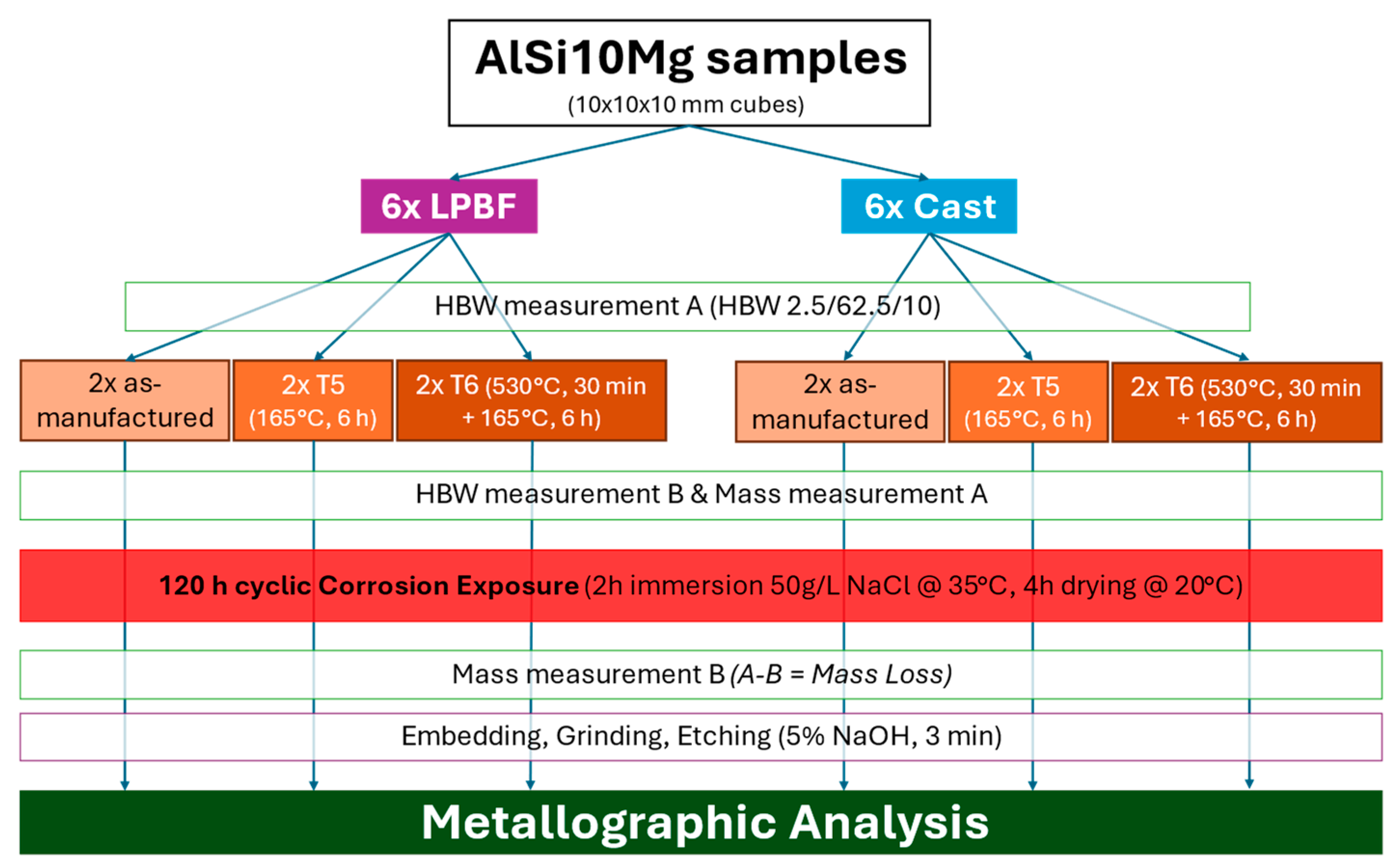Buhl F, Feil K, Tusch N, Korten A, Schempp P. Effect of Heat Treatment on the Corrosion Behavior of Additively Manufactured and Cast AlSi10Mg. Corrosion and Materials Degradation. 2026; 7(1):5. https://doi.org/10.3390/cmd7010005