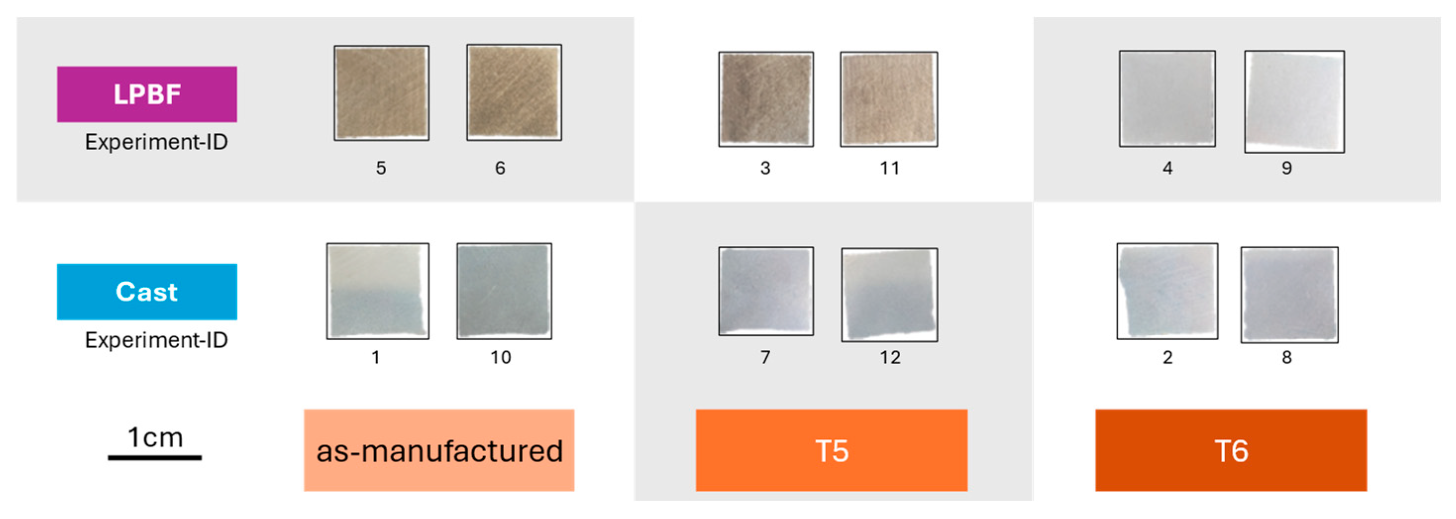 - DIN EN 515; Aluminium Werkstoffzustände. DIN Media GmbH: Berlin, Germany, 2017.