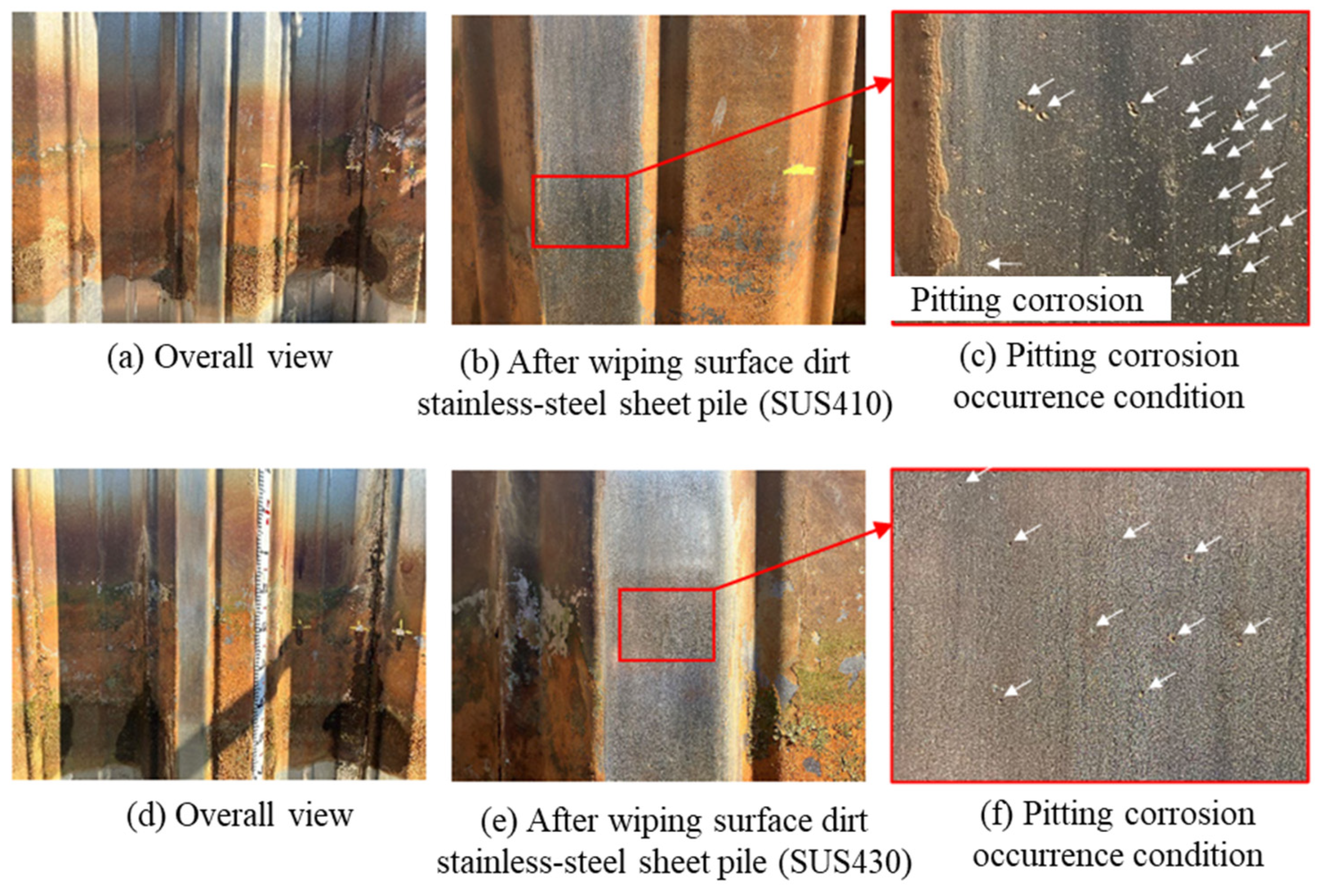 2.1. Definition of Pitting Corrosion in Stainless-Steel Sheet Pile Walls