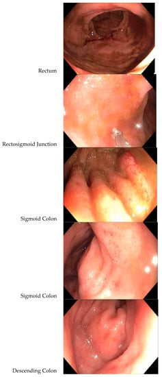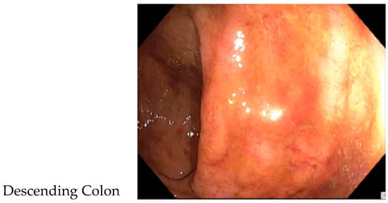 - A colonoscopy revealed a diffuse area of moderately congested, erythematous, friable and inflamed mucosa in the rectum, the recto-sigmoid colon, the sigmoid colon, the descending colon and at the splenic flexure (see Figure 1). A biopsy revealed mild active inflammation with mild architectural changes;