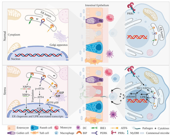 2.1. IRE1–XBP1 Signaling in IECs and Myeloid Cells