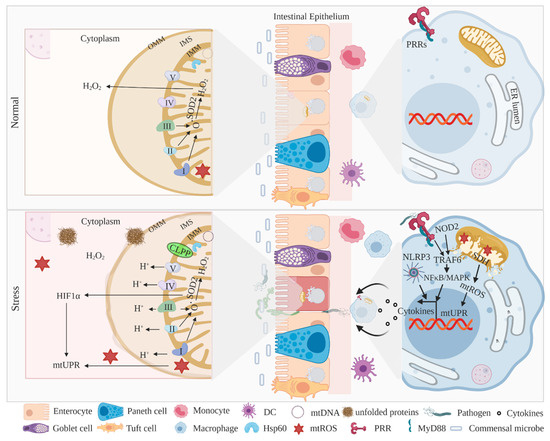 - Rath, E.; Haller, D. Mitochondria at the Interface Between Danger Signaling and Metabolism: Role of Unfolded Protein Responses in Chronic Inflammation. Inflamm. Bowel Dis. 2012, 18, 1364–1377. [Google Scholar] [CrossRef] [PubMed]