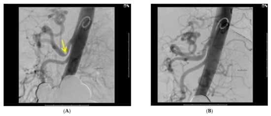 - Schreiber, J.P.; Angle, J.F.; Matsumoto, A.H.; Young, J.S.; Hagspiel, K.D.; Spinosa, D.J. Acute visceral ischemia occurring subsequent to blunt abdominal trauma: Potential culpability of median arcuate ligament compression. J. Trauma Acute Care Surg. 1998, 45, 404–406. [Google Scholar] [CrossRef] [PubMed]