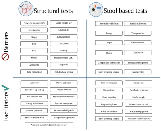 The main barriers reported by individuals undergoing stool-based screenings are caused by “interaction with feces” [] that, generally, brings along feelings of “disgust” [,], “shame” [], “discomfort”, and “embarrassment” [].
