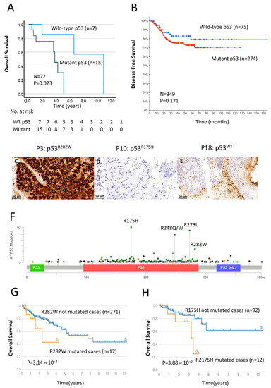 - Singh, N.; Piskorz, A.M.; Bosse, T.; Jimenez-Linan, M.; Rous, B.; Brenton, J.D.; Gilks, C.B.; Köbel, M. P53 Immunohistochemistry Is an Accurate Surrogate for TP53 Mutational Analysis in Endometrial Carcinoma Biopsies. J. Pathol. 2020, 250, 336–345. [Google Scholar] [CrossRef]