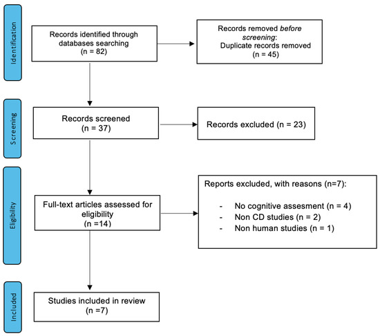 We included all literature related to CD-associated cognitive impairment published in English from 2000 to 2022, excluding reviews, clinical trials and qualitative studies. Exclusion criteria were the absence of neuropsychological assessment, non-human studies and non-CD studies.