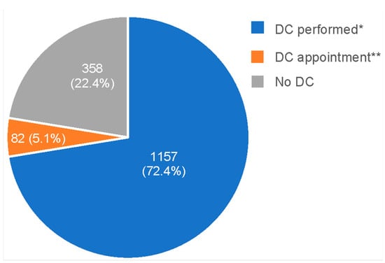 | DC Performed (N = 1157) | DC Appointment (N = 82) | No DC (N = 358) | Total (N = 1597) | ||