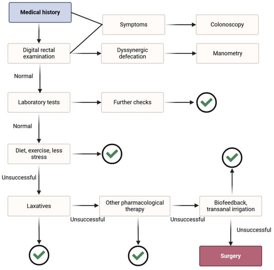 - Włodarczyk, J.; Waśniewska, A.; Fichna, J.; Dziki, A.; Dziki, Ł.; Włodarczyk, M. Current Overview on Clinical Management of Chronic Constipation. J. Clin. Med. 2021, 10, 1738. [Google Scholar] [CrossRef] [PubMed] [PubMed Central]