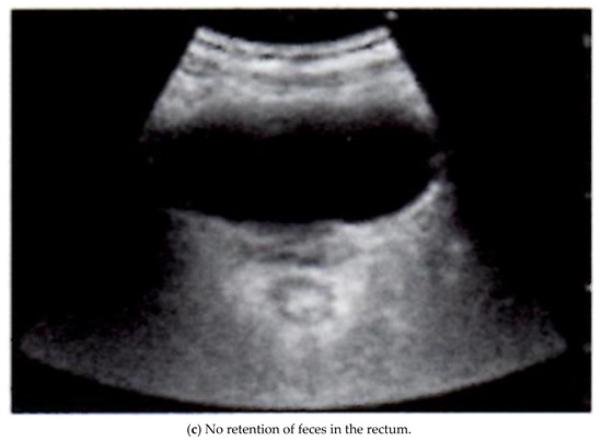 In the future, this classification system is expected to be useful in clinical applications to determine treatment strategies [36]. In other words, if the rectum is free of feces, as determined by ultrasound imaging, there is no need to administer an enema; if hard stools are found, dissection can be performed to prevent complications such as severe intestinal perforation due to subsequent administration of laxatives. In addition, if normal stool is confirmed in the rectum using an ultrasound imaging device, treatment for constipation by encouraging defecation with suppositories, which has been based on trial and error, will hopefully become more consistent with the disease state [36].