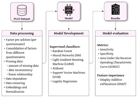 We followed a structured process of data handling, from factor preselection to model validation. A schematic overview of the entire data processing workflow and the definition of key terms and definitions to machine learning are shown in Figure 1 and Table S1 (Supplementary Materials), respectively.