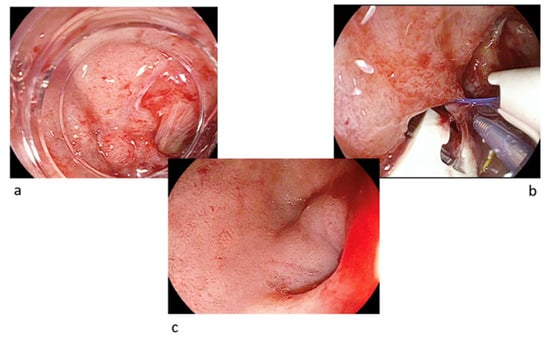 - Mukewar, S.; Kumar, N.; Catalano, M.; Thompson, C.; Abidi, W.; Harmsen, W.; Enders, F.; Gostout, C. Safety and Efficacy of Fistula Closure by Endoscopic Suturing: A Multi-Center Study. Endoscopy 2016, 48, 1023–1028. [Google Scholar] [CrossRef]