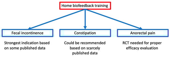- Palsson, O.S.; Heymen, S.; Whitehead, W.E. Biofeedback treatment for functional anorectal disorders: A comprehensive efficacy review. Appl. Psychophysiol. Biofeedback 2004, 29, 153–174. [Google Scholar] [CrossRef] [PubMed]