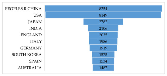 The top 10 most productive countries are shown in Figure 4. China ranks first, followed closely by the USA. Japan holds third place, with roughly one-quarter of the publication output of the leading two countries.