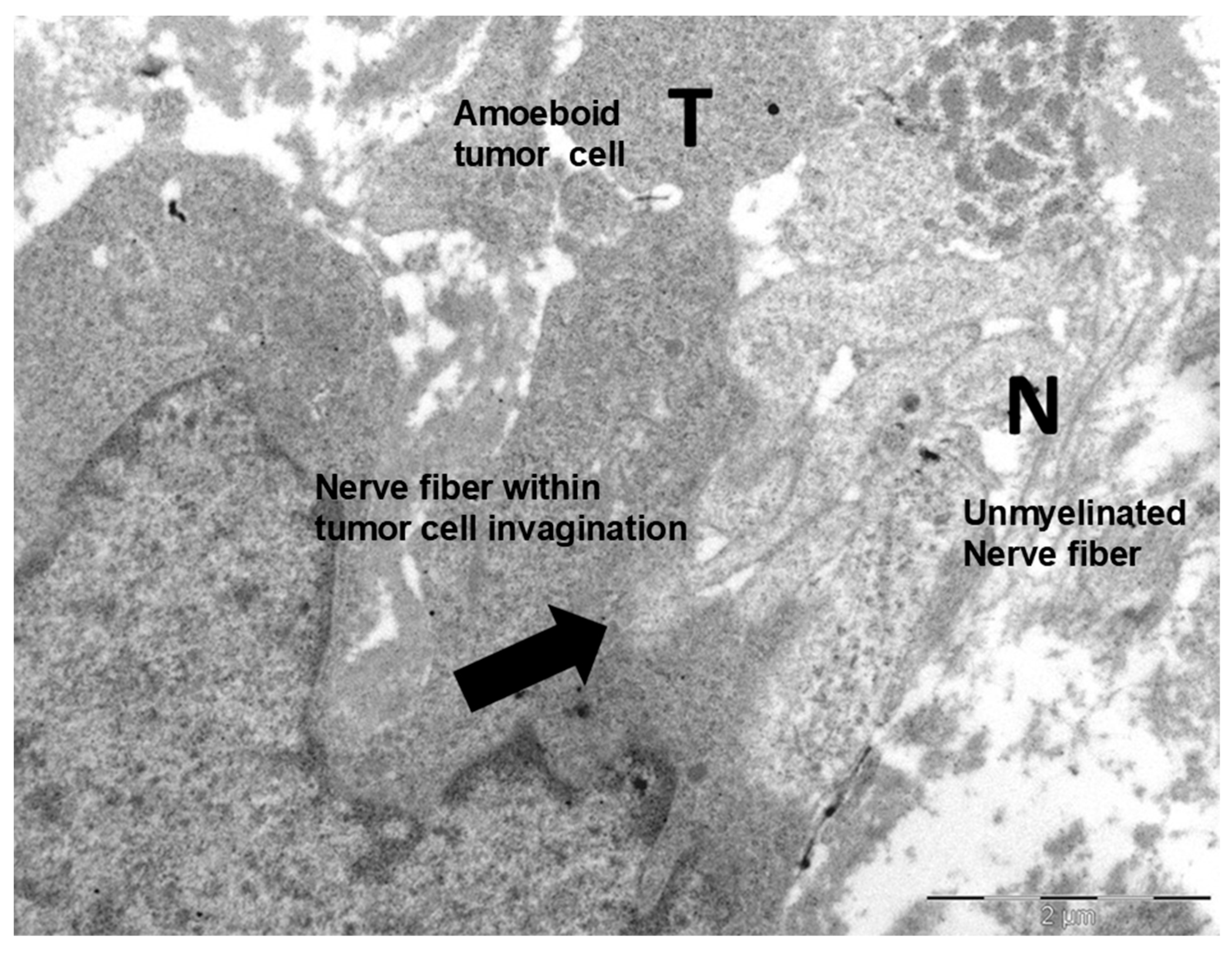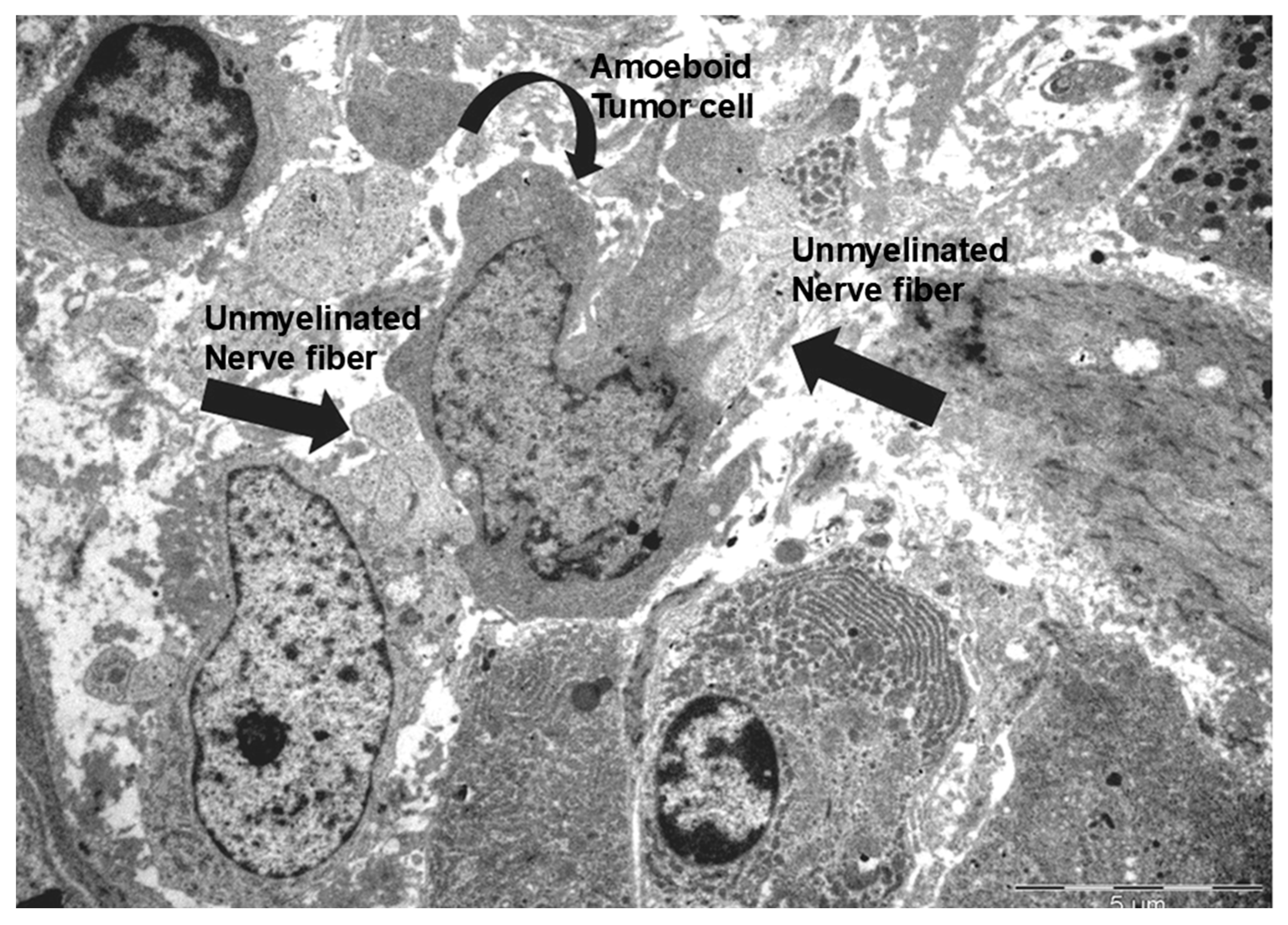 - Chen, S.H.; Zhang, B.Y.; Zhou, B.; Zhu, C.Z.; Sun, L.Q.; Feng, Y.J. Perineural invasion of cancer: A complex crosstalk between cells and molecules in the perineural niche. Am. J. Cancer Res. 2019, 9, 1–21. [Google Scholar] [PubMed]