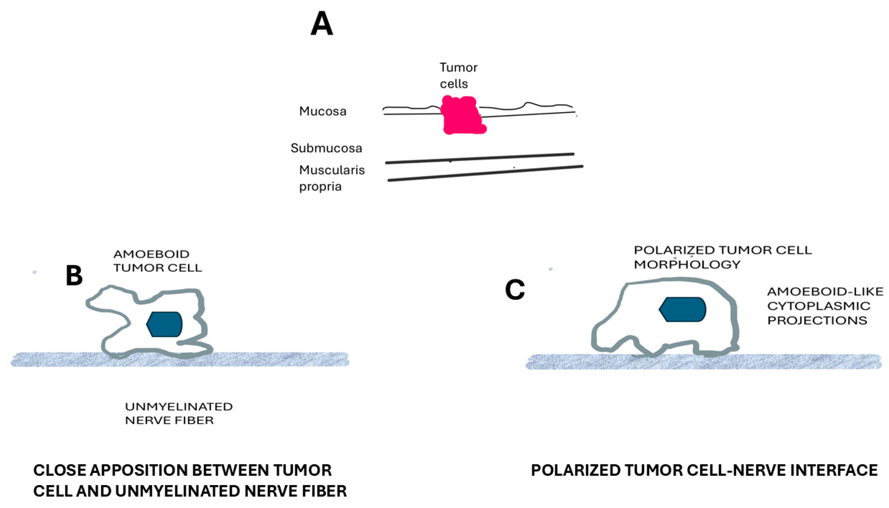 Caruso, V.; Rigoli, L.; Caruso, R. Ultrastructural Features of Amoeboid Tumor Cell–Unmyelinated Nerve Fiber Interactions in Early Gastric Cancer: A Case Report Within the Context of Cancer Neuroscience. Gastrointest. Disord. 2026, 8, 11. https://doi.org/10.3390/gidisord8010011