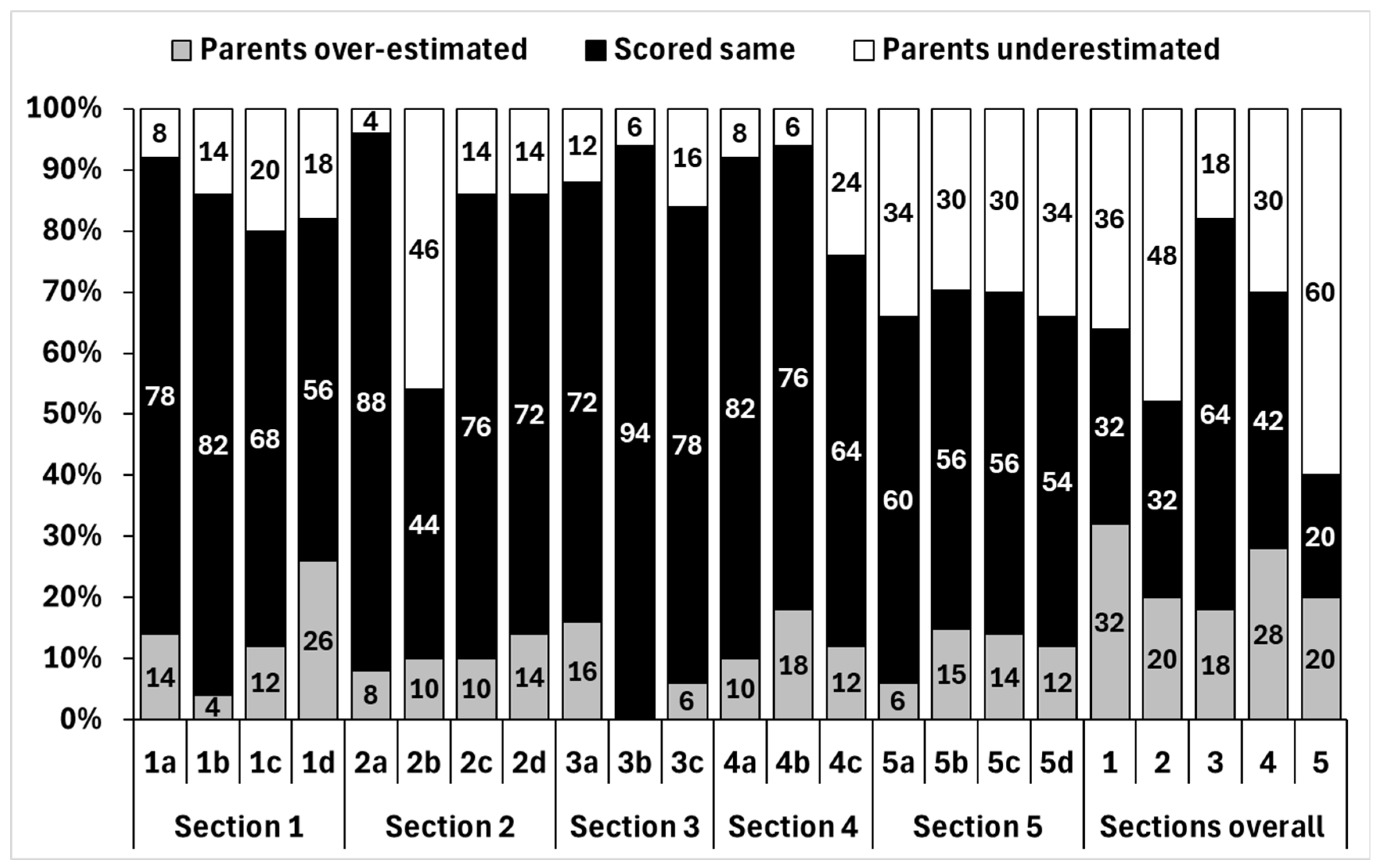 | Parent Underestimated | Parent Overestimated | Scored Same | Gwet’s AC1: Rating | |