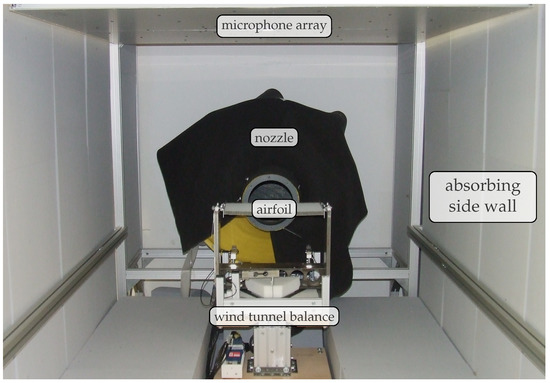 - Sarradj, E.; Fritzsche, C.; Geyer, T.F.; Giesler, J. Acoustic and aerodynamic design and characterization of a small-scale aeroacoustic wind tunnel. Appl. Acoust. 2009, 70, 1073–1080. [Google Scholar] [CrossRef]