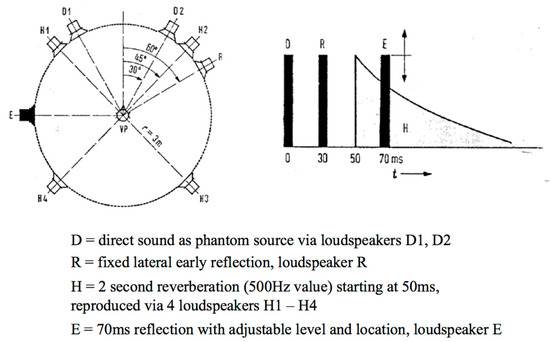 - Morimoto, M.; Iida, K.; Sakagami, K. The role of reflections from behind the listener in spatial impression. Appl. Acoust. 2001, 62, 109–124. [Google Scholar] [CrossRef][Green Version]