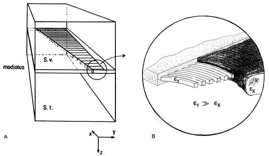 - Böhnke, F.; Arnold, W. Mechanics of the Organ of Corti Caused by Deiters Cells. IEEE Trans. Biomed. Eng. 1998, 45, 1227–1233. [Google Scholar] [CrossRef] [PubMed]