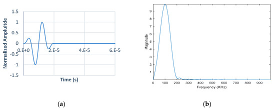 (a) The time domain of the excitation signal; (b) the frequency spectrum of the excitation signal obtained by FFT.