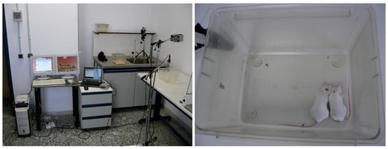 All the experiments were conducted with the mice in a container of dimensions of 30 × 15 × 15 cm. The ultrasonic condenser microphone (Model CM16/CMPA, Avisoft Bioacoustics, Berlin, Germany) was placed on top of the container at a distance of approximately 30 cm (Figure 2).