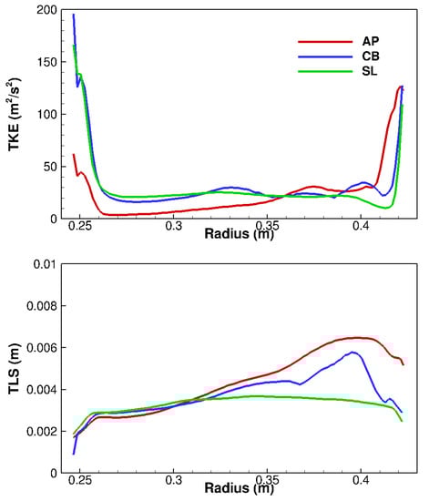 The turbulence kinetic energy was circumferentially area-averaged and the turbulence length scale was weighted by the local value of TKE as proposed by Jaron et al. []: