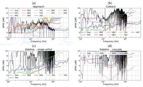 - Moreau, S.; Roger, M. Advanced noise modeling for future propulsion systems. Int. J. Aeroacoust. 2018, 17, 576–599. [Google Scholar] [CrossRef]
