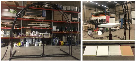 With the dimensions of this setup, the reflections from the floor are the first spurious reflection arriving at the microphones after the sound reflected from the panel under test. The measurement setup with the dimensions is illustrated in Figure 3. Only one panel for each of the materials was measured. The measurements were conducted under the same environmental conditions, i.e., the same room temperature and the same relative humidity.