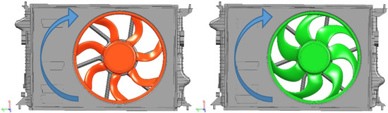 - Zayani, M.; Caglar, S.; Gabi, M. Aeroacoustic investigations on axial fans for automotive cooling systems. In Proceedings of the 14th International Symposium on Transport Phenomena and Dynamics of Rotating Machinery, Moana Surfrider Hotel, Honolulu, HI, USA, 27 February–2 March 2012. [Google Scholar]