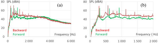 Compared acoustic spectra: (a) low to high frequencies, and (b) low to medium frequencies.