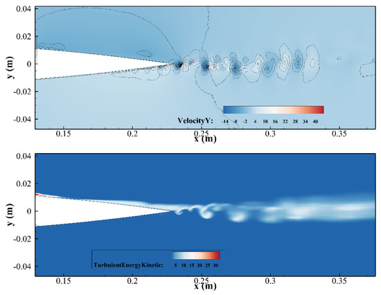 This interaction gives rise to an acoustic source located in the near wake similar to what was proposed by Nash et al. [62]. Such interaction mechanism can be observed clearly in both vertical velocity and the Turbulent Kinetic Energy (TKE) contours (Figure 5).