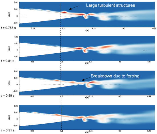 - Winant, C.D.; Browand, F.K. Vortex pairing: The mechanism of turbulent mixing-layer growth at moderate Reynolds number. J. Fluid Mech. 1974, 63, 237. [Google Scholar] [CrossRef]