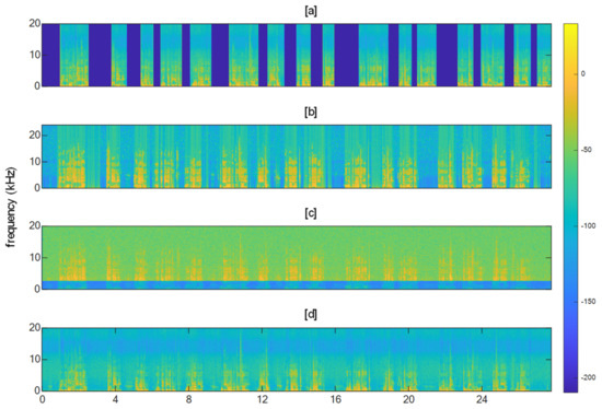 Low-pass filters (LPFs) are commonly used for speech quality enhancement, especially for medical purposes such as diagnosis of auditory processing disorders. Due to the mixed noises present in the lower spectrum closer to the pitch (Figure 3), it was found that using a LPF in speech enhancement has a negligible effect in improving the speech quality for such microphones. Given that typical human pitch can range from 100–120 kHz with slight variations depending on the age and gender [29], designing an LPF that produces promising results was highly challenging.