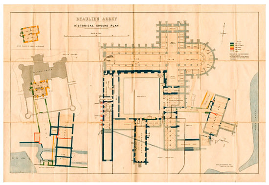 - Hope, W.J.S.; Brakspear, H. The Cistercian Abbey of Beaulieu, in the County of Southampton. Archaeol. J. 1906, 63, 129–186. [Google Scholar] [CrossRef]