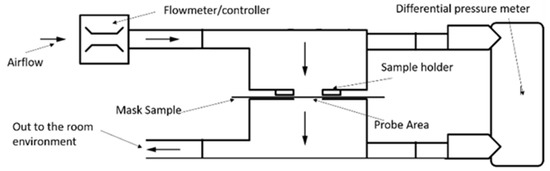 Scheme of the layout of the breathability test, according to the EN 14683 standard [3].