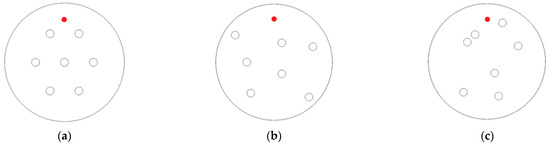 Figure 6. Orifice arrangement in the resonator cover: (a) Variant 1; (b) Variant 2; (c) Variant 3.