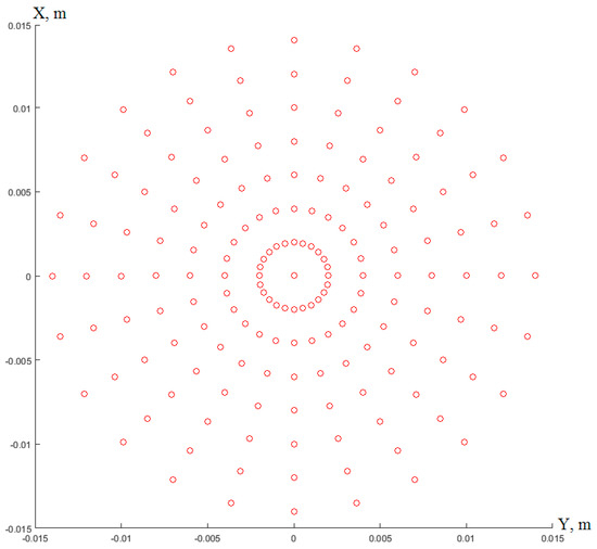 The array of points at the resonator backing for recording acoustic pressure P e in numerical simulation is shown in Figure 8.