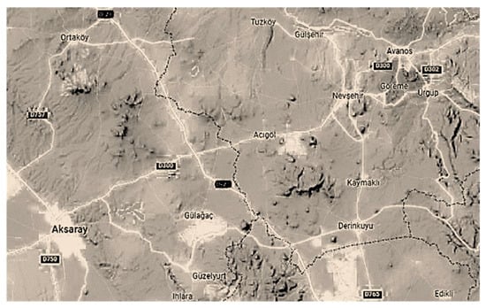 A map of the towns in Cappadocia taken from Google Maps. A similar map has been used by Öztürk [], p. 137.