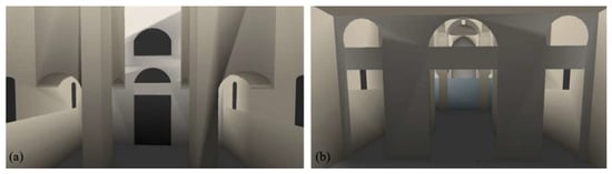 3D Open GL of an interior view of Bell Church from (a) Phase I; (b) Phase II.