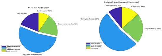 Previous research has shown that visual environments are closely related to the sound environments, and the quality of the visual environment plays an important role in assessing the qualities of the soundscape [47,48,49,50,51]. The qualitative analysis was made through the subjective responses given by the listeners in the listening test; it refers, for each cluster, to a general impression of acoustic comfort, annoyance, pleasantness, and unpleasantness of the sounds that are used to compose the test. The tests did not take into account non-auditory factors, such as daylight and fragrance (smell), because they were not decisive for this type of analysis, although they appear to be important aspects of soundscapes. The questionnaire was created on an online platform and shared through web forms. Participants were asked to describe the sound environment of the seaport during a virtual sound-walking built using a Google form.