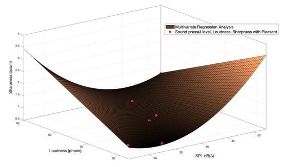 Figure 9. Results of multivariate regression between SPL, loudness, and sharpness with pleasant. Several noteworthy results were: r 2 = 0.82; Sse 0.21; Dfe 3, Rmse 0.36.