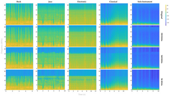 4.3. Impact of MP3 Compression on Electronic, Rock and Jazz Music