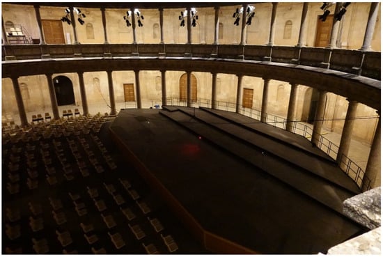 In 1637, the construction process was finally abandoned due to the decline in the Spanish Empire and political factors. We owe the appearance of the Palace that we admire today to Leopoldo Torres Balbás and later to Francisco Prieto Moreno, who finally carried out a master plan for the Palace restoration, including the covering (the roof), all between 1923 and 1958. The first known musical event held in the Palace of Charles V was in 1883 as part of the city’s Corpus Christi festival. It was also used to hold international flamenco competitions, such as the one held in 1922 by García Lorca, Manuel de Falla, Andrés Segovia and other intellectuals of that time. More recently, every year since 1952, the International Festival of Music and Dance of Granada has been using it as a concert hall. In this important musical event, the Palace of Charles V always occupies a central position. According to the local press [37], Daniel Barenboim said “The sound of the Palace of Charles V is much better than that of many enclosed halls. The shape of its walls makes it a wonderful acoustic shell.”