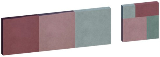 The objective of this phase was to stimulate the flexibility and customization of environmental surfaces, as these sub-modules could be composed together, like a Mondrian painting, or like a puzzle, by adding and/or subtracting volumes. This possibility of composition allowed a conspicuous pattern variability to be obtained. Some pattern examples are shown in Figure 4.