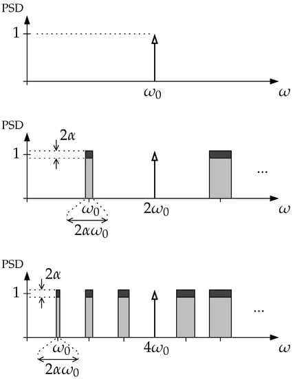 We consider that represents a discrete-time signal containing a target sinusoid whose frequency is , and that is affected by additive white Gaussian noise, , and, possibly also, other co-existing sinusoidal components that are quasi-harmonically related. These are generally represented by .